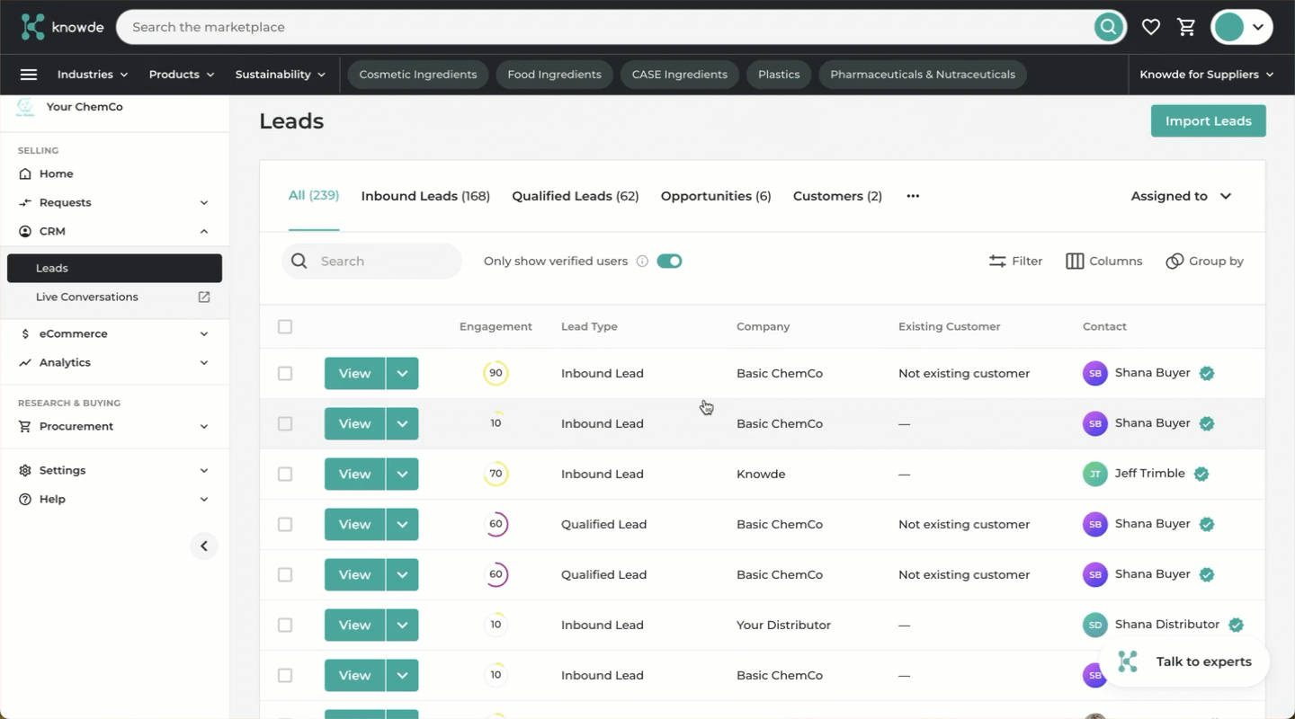 Filter by Assignee to see which representatives are responsible for nurturing a lead to become an opportunity.